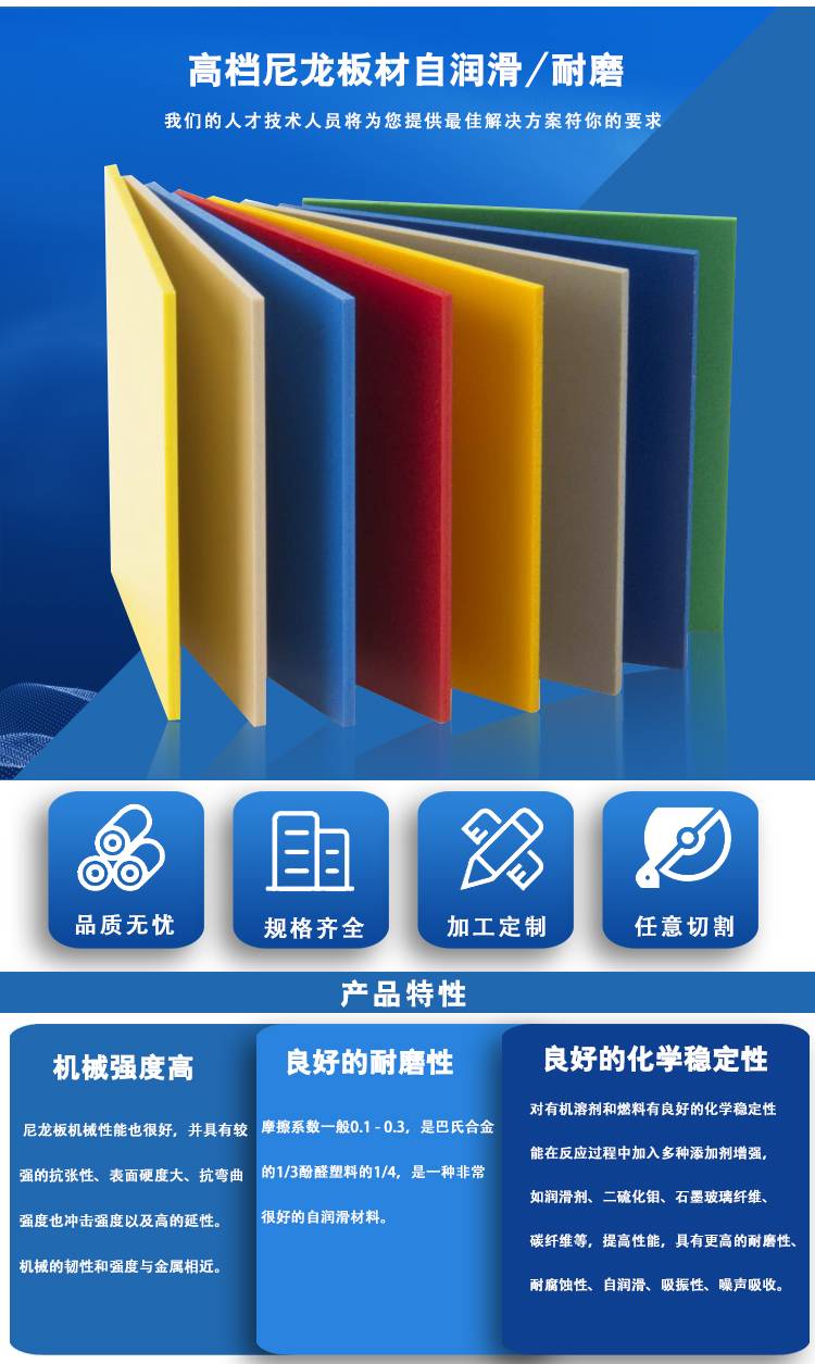 UHMW-PE、含油尼龍、MC尼龍、POM、PP、PE1000,PTFE,PEI,