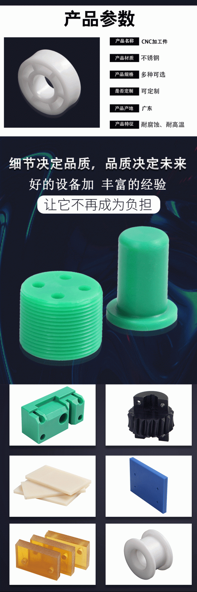 UHMW-PE、含油尼龍、MC尼龍、POM、PP、PE1000,PTFE,PEI,