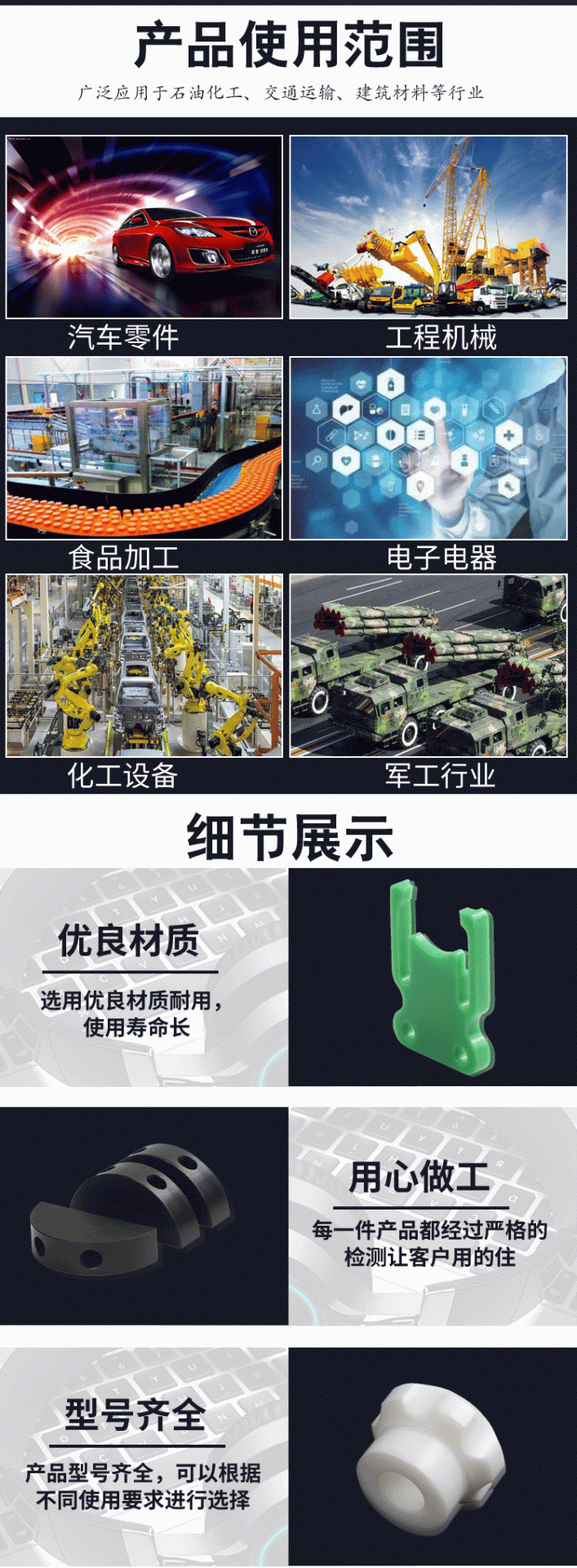 物流輸送設備、包裝機械設備、輸送機設備等行業的工程塑料配件加工