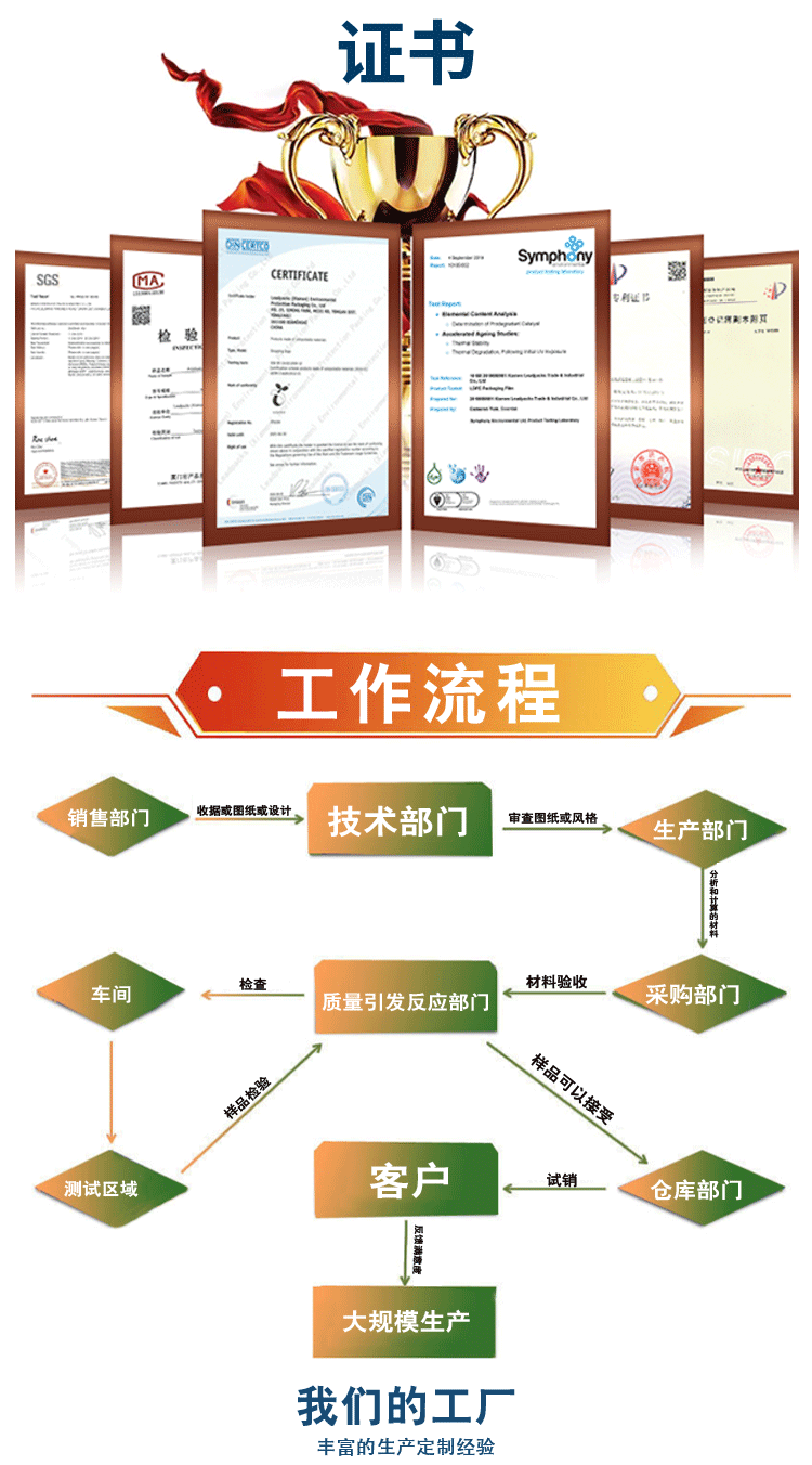我們公司嚴格執行ISO9001(2008)國際質量認證體系!產品質量符合歐盟ROHS和美國FDA標準!